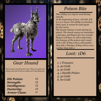 Story/Setting: Over a hundred years ago, the Forgers created the first Cog. A sentient machine, forged with metal, machinery, and magic. Originally meant to help the forgers who created them, the First Cogs soon turned on the Forgers. In the years since the Cog uprising, they’ve been experimenting with the formula, creating different variances of themselves in the search for creating the perfect Cog. During this time, humans, and magical creatures alike, have been raging a war against the Cogs, making very little head way. With the threat of The Flawless, a perfect Cog looming over them, they set aside their differences to launch a final campaign against the Cogs.